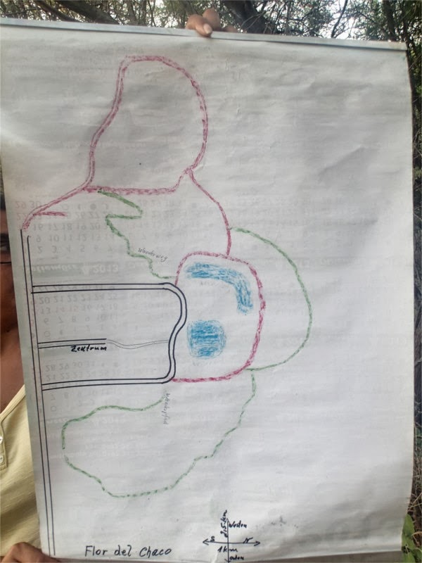 After an animal-filled drive there, we pulled into the reserve and met Hugo Stahl, a Christian missionary and the owner of this private dry Chaco reserve. He pulled out a giant hand-drawn map he had made for us before sending us off towards the lake in search of animals. We started on the ‘walking’ trails which provided a closer look at the nature first. The thorns got us everywhere – it wasn’t easy to walk through unless you stuck to the trails, elsewhere you’d end up scratched. Later on we’d both find and extract tiny blood-sucking ticks which had imbedded themselves in our skin from the experience of walking so close to the bush.