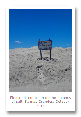 Arriving at Salinas Grandes, we could barely see without sunglasses. The glare from the salt was intense. Much of the salt is being harvested and there were machines all over the place for the gathering, treating and collection of the salt.