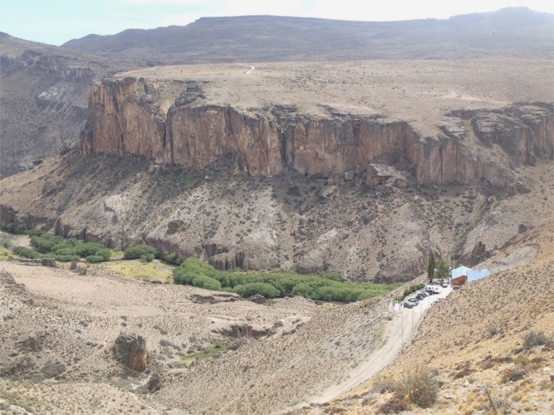 After the insane bus ride to Perito Moreno in Santa Cruz Province (again, the city not the glacier!) Colin and I were in dire need of some simple touring and housing. We wanted everything to go decently smoothly and kept simple since our sleep had been very minimal (less than 2 hours for Colin and not much for me either) that past night. Thankfully the morning of January 7th we got lucky and the two of us (plus a guy from Japan) paid $350 Argentine pesos each (yes, expensive) for a day trip to the UNESCO World Heritage Site Cuevos de los Manos aka the Cave of Hands. Our driver for the day took us from the bus station to his hostel to drop off our things, stopping at the bakery on the way for some provisions of chocolate chip muffins and pastries. After a quick tea and some munching on food in the hostel dining room the four of us set off for the very long yet fascinating drive – pretty much out into the middle of nowhere.